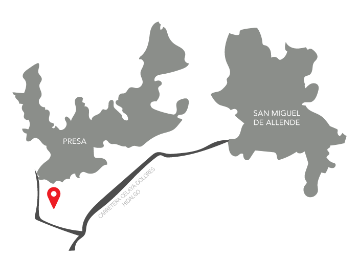 El Fraccionamiento se encuentra ubicado a solo 8 minutos de la ciudad de San Miguel de Allende, cuenta con vistas a la presa de Allende.