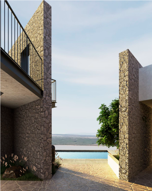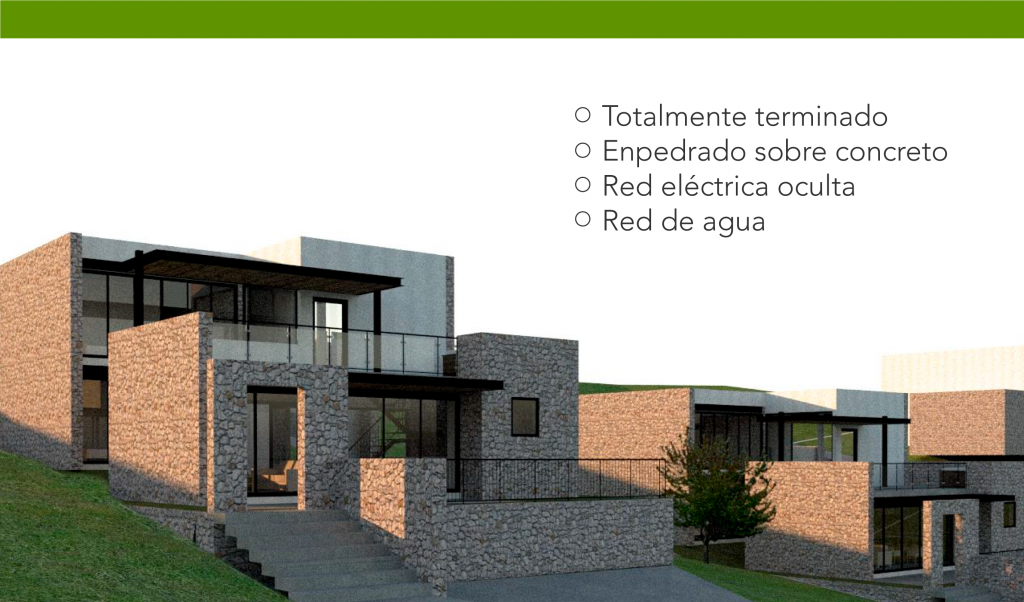 Con el uso de materiales de la zona tales como piedra y toques modernos de estructuras de acero y herrería para generar diseños atemporales resistentes al tiempo y crear un efecto de inclusión y fusión de la vivienda con el exterior mismo natural.